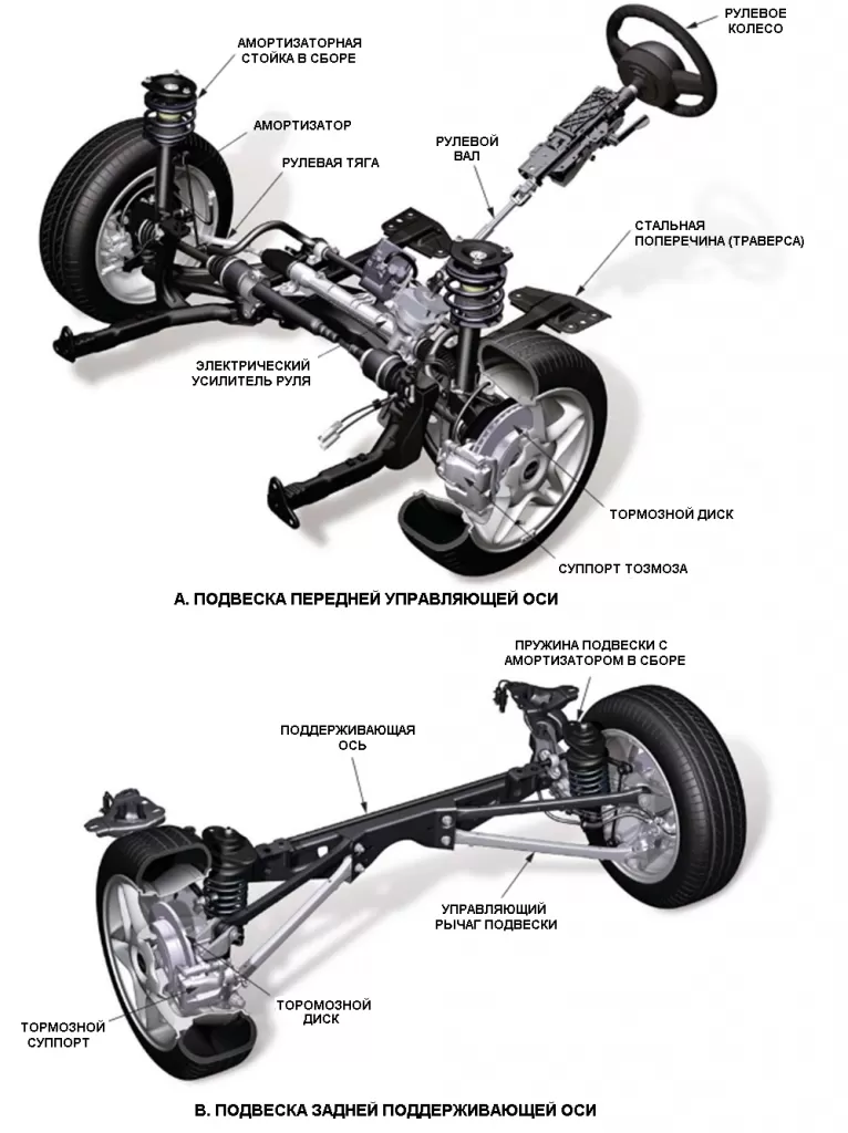 Ходовая часть автомобиля состоит из нескольких ключевых элементов, каждый из которых выполняет свою важную функцию: