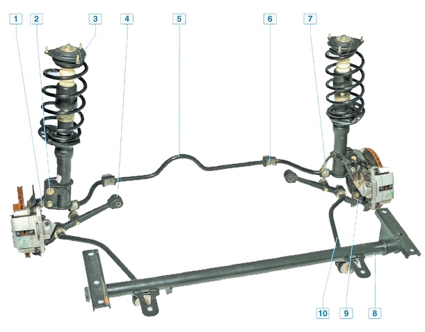Ходовая часть автомобиля Приора состоит из нескольких ключевых элементов, каждый из которых выполняет свою определенную функцию: